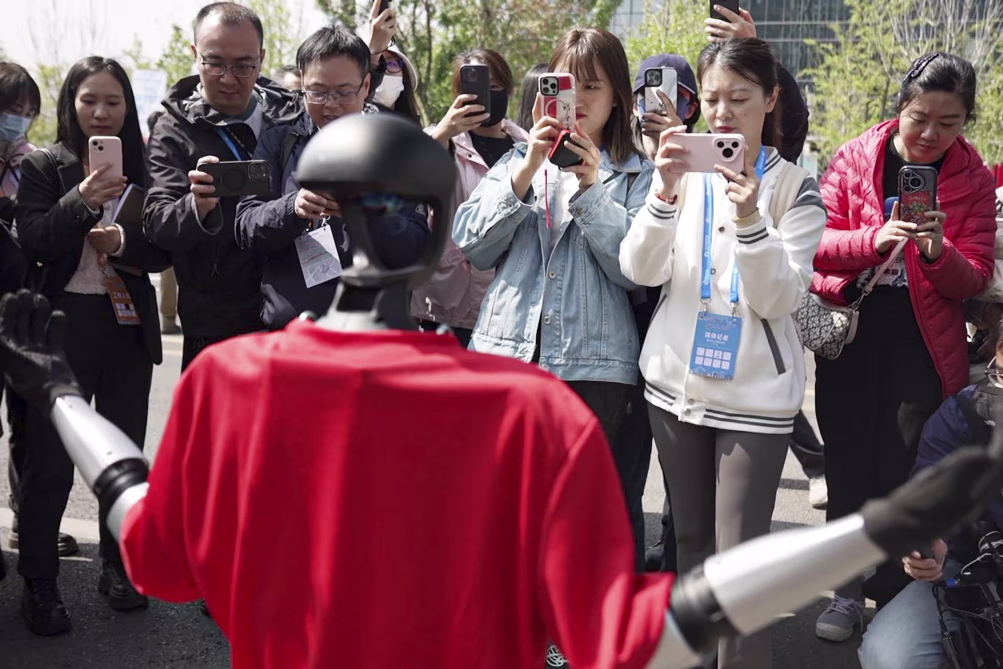 A total of 21 humanoid robots competed alongside people in a half-marathon in Beijing, stoking national pride in China amid its intensifying tech rivalry with the U.S.